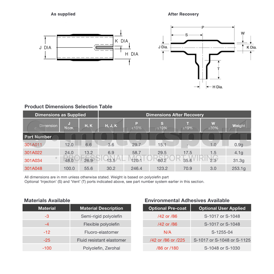 Т-образный термоусадочный кожух TE | Raychem 301A011-25-0
