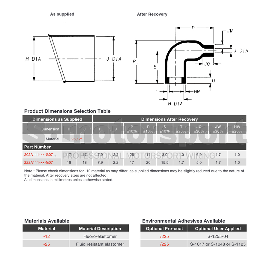 Документация >>> TE | Raychem | 222A111-25-G07-0 Technical Drawing