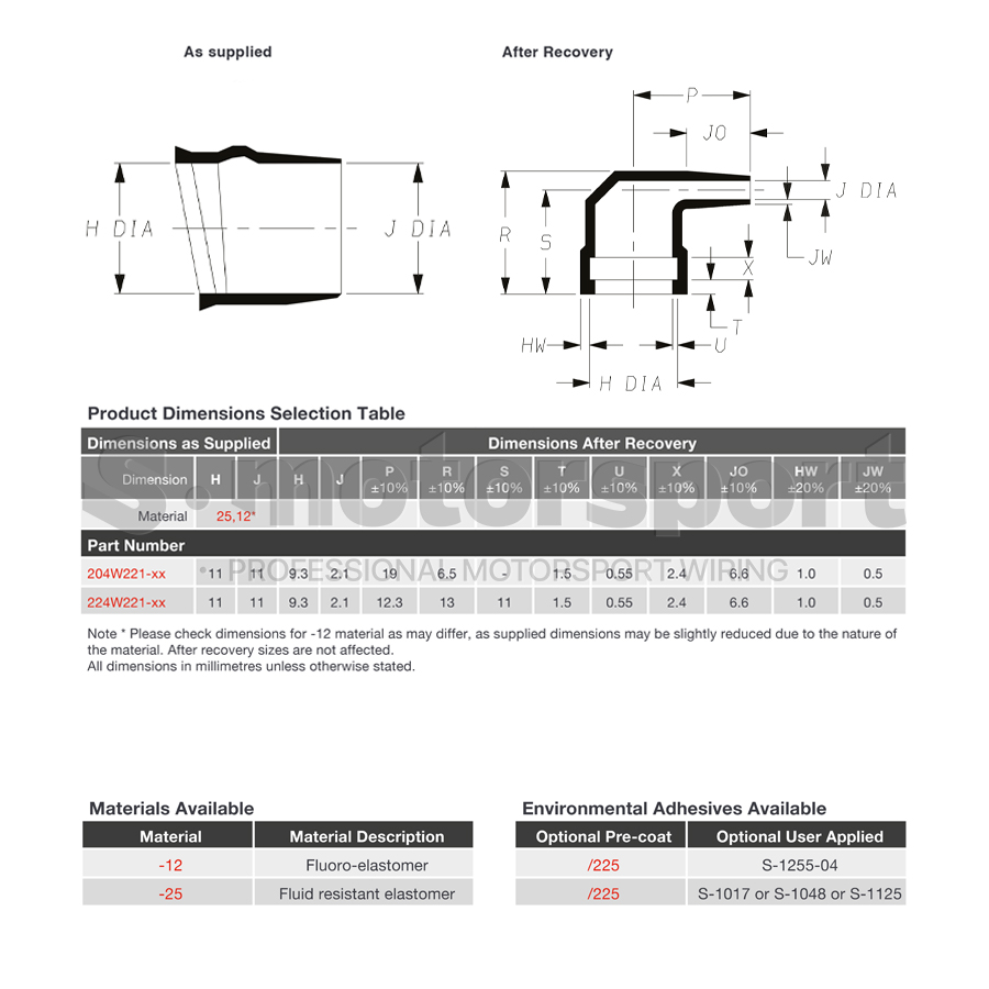 Документация >>> TE | Raychem | 224W221-25-0 Technical Drawing