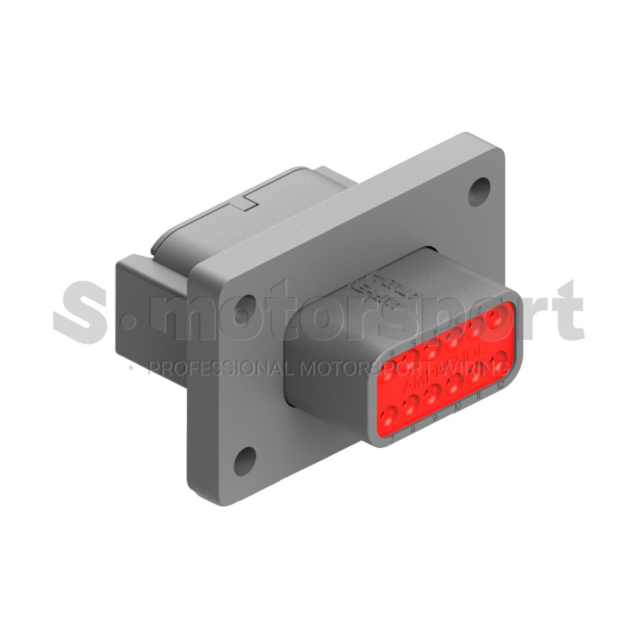 12-ти контактный разъём Amphenol Sine Systems PM02 Series ATM04-12PA-PM01 - это герметичный промышленный соединитель с фланцем и защитой IP68/IP69K, рассчитанный на надёжную работу в условиях высокой влажности, вибраций, перепадов температур и механических нагрузок. Серия соединителей PM01 выполнена из термостойкого пластика, устойчивого к УФ-излучению, химическим реагентам, маслам и топливу. Диапазон рабочих температур от –55°C до +125°C. Задний уплотнитель имеет зауженный диаметр Standard Diameter Rear Seal - 1.35mm - 3.05mm, который обеспечивает лучшую защиту от влаги при использовании проводов стандартного сечения. Фланец соединителя не имеет резинового уплотнения. Разъем монтируется с внешней или внутренней стороны панели, перегородки или корпуса оборудования.
