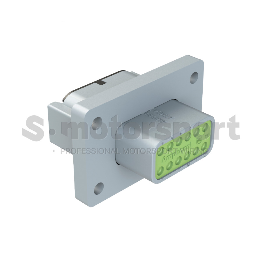 12-ти контактный разъём Amphenol Sine Systems PM02 Series ATM04-12PB-PM02 - это герметичный промышленный соединитель с фланцем и защитой IP68/IP69K, рассчитанный на надёжную работу в условиях высокой влажности, вибраций, перепадов температур и механических нагрузок. Серия соединителей PM02 выполнена из термостойкого пластика, устойчивого к УФ-излучению, химическим реагентам, маслам и топливу. Диапазон рабочих температур от –55°C до +125°C. Задний уплотнитель имеет зауженный диаметр Reduced Diameter Rear Seal - 1.12mm - 2.31mm, который обеспечивает лучшую защиту от влаги при использовании проводов малого сечения. Фланец соединителя не имеет резинового уплотнения. Разъем монтируется с внешней или внутренней стороны панели, перегородки или корпуса оборудования.